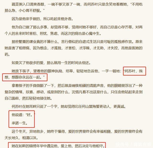 比起剧版的“人工撒糖”,小说更擅长用生活细节酿造甜味: -何苏叶会因沈惜凡偷吃冰淇淋而“罚”她喝姜茶; -沈惜凡熬夜加班时,他默默在办公室放一壶安神花茶; -就连告白都是用病历本写:“诊断结果:相思病。治疗方案:与我相爱。”